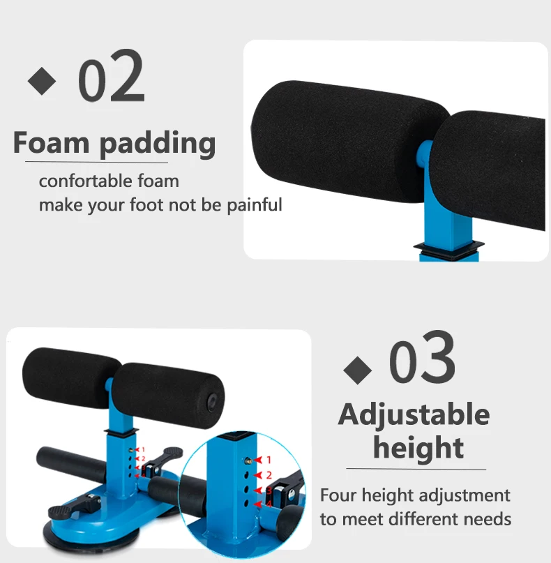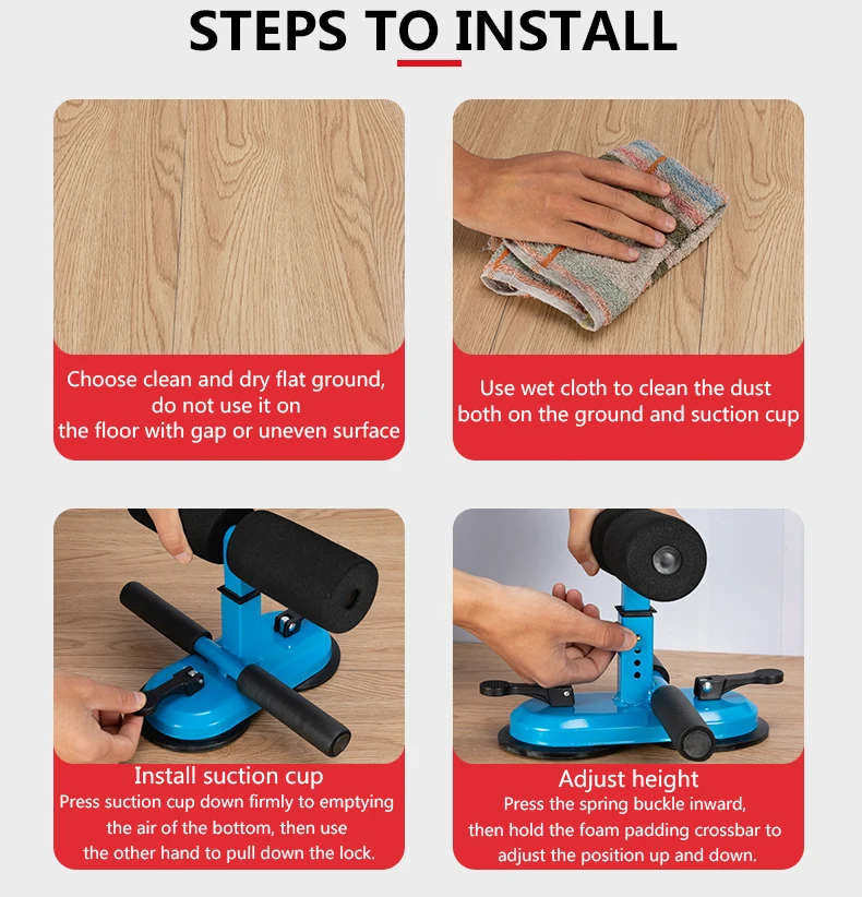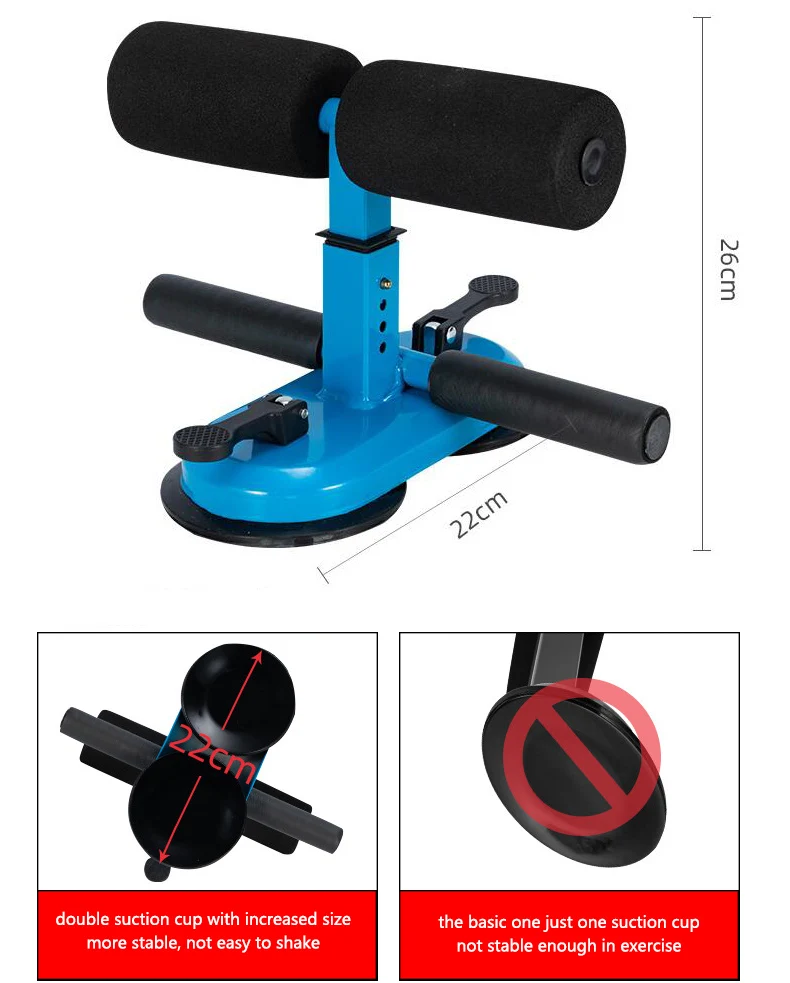 - Multiple functions: Use it to exercise your abdomen, it can also be used to exercise the legs and lose weight. - Two suction cups: Newly upgraded two suction cups are more stable, not easy to shake, and fitness is safer. Four gear heights, which can be adjusted freely and can be used by the whole family. - Suitable for all occasions: you can exercise at home or even take it with you when you travel. Can be used in the office or outdoors.